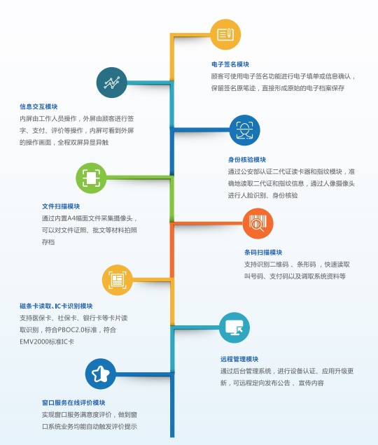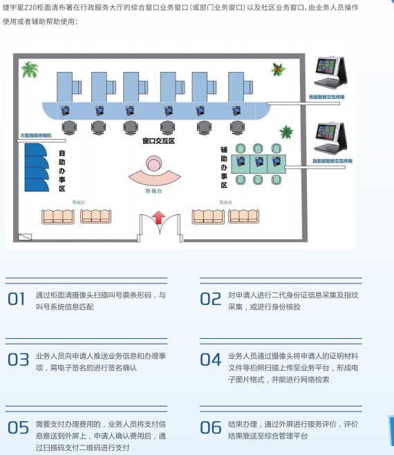 適用于各行各業(yè)智慧營(yíng)業(yè)廳、行政服務(wù)大廳的綜合業(yè)務(wù)窗口柜面、各部門]的專門業(yè)務(wù)窗口柜面、社區(qū)服務(wù)站等業(yè)務(wù)辦理窗口柜面。