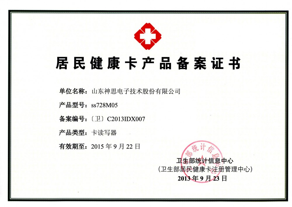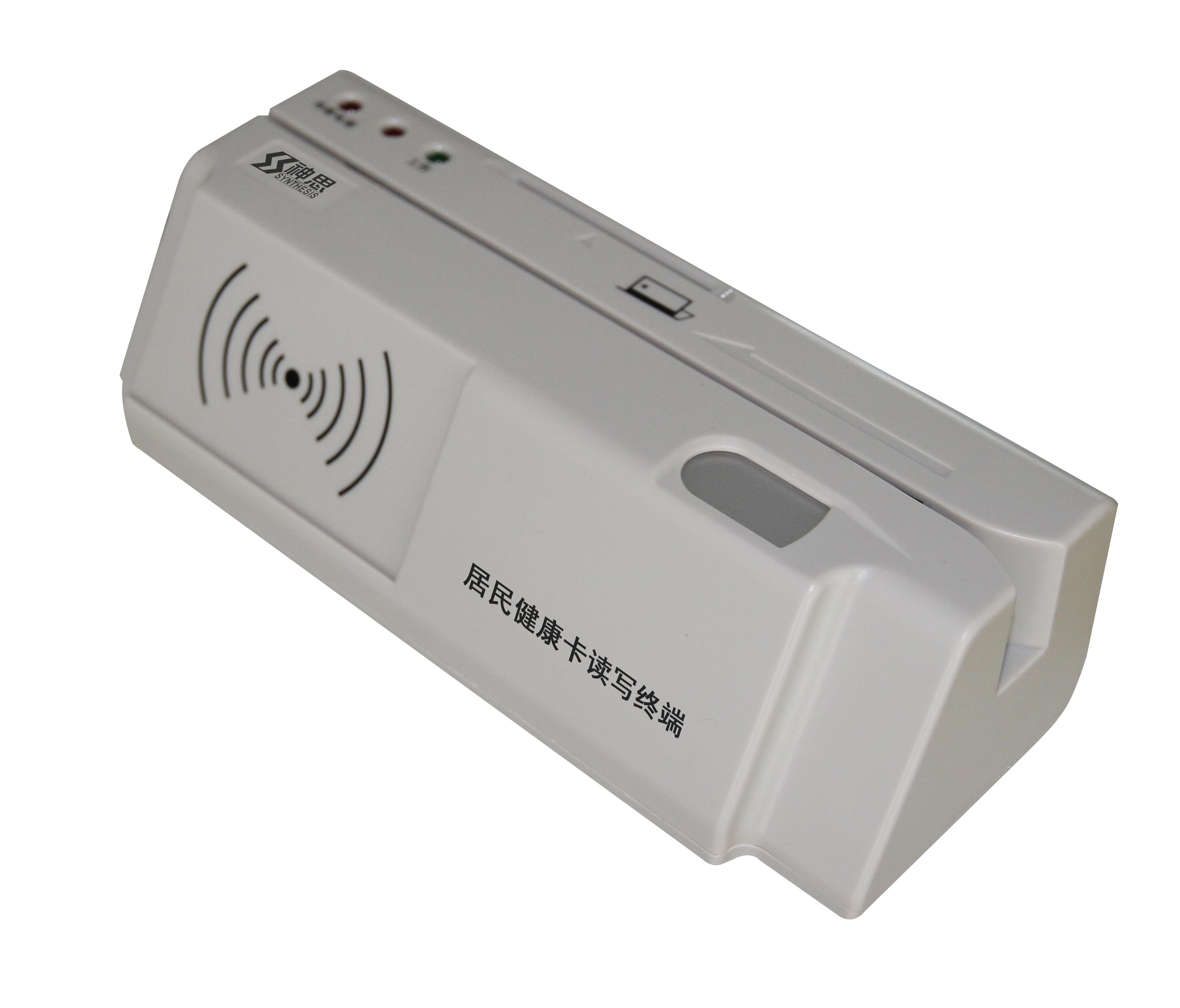 SS728M05居民健康卡讀寫(xiě)終端是山東神思電子技術(shù)股份有限公司針對(duì)醫(yī)療衛(wèi)生行業(yè)居民健康卡、身份證、社???、磁條卡等多合一讀卡需求研發(fā)的小型化一體式讀卡終端。該設(shè)備解決了目前醫(yī)療衛(wèi)生行業(yè)現(xiàn)存的磁條卡,自定義CPU卡及M1卡向居民健康卡的過(guò)渡問(wèn)題。本終端可讀寫(xiě)居民健康卡、符合ISO14443標(biāo)準(zhǔn)的CPU卡,M1卡,符合ISO7816標(biāo)準(zhǔn)的接觸IC 卡(社??ǎ?、磁條卡(只讀),可以識(shí)讀第二代居民身份證;并可根據(jù)用戶需求實(shí)現(xiàn)讀卡后自定義數(shù)據(jù)的模擬鍵盤(pán)上傳。