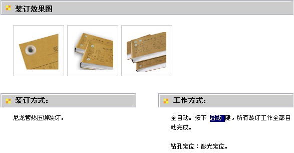 3、全自動(dòng):按下啟動(dòng)鍵,所有裝訂工作全部自動(dòng)完成。
